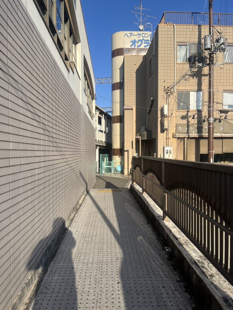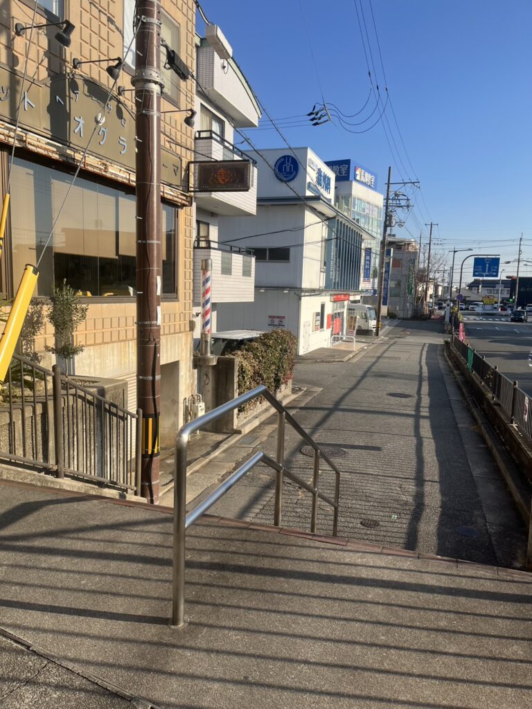 ヘアーサロンオグラさんの前にある階段を下ります。
